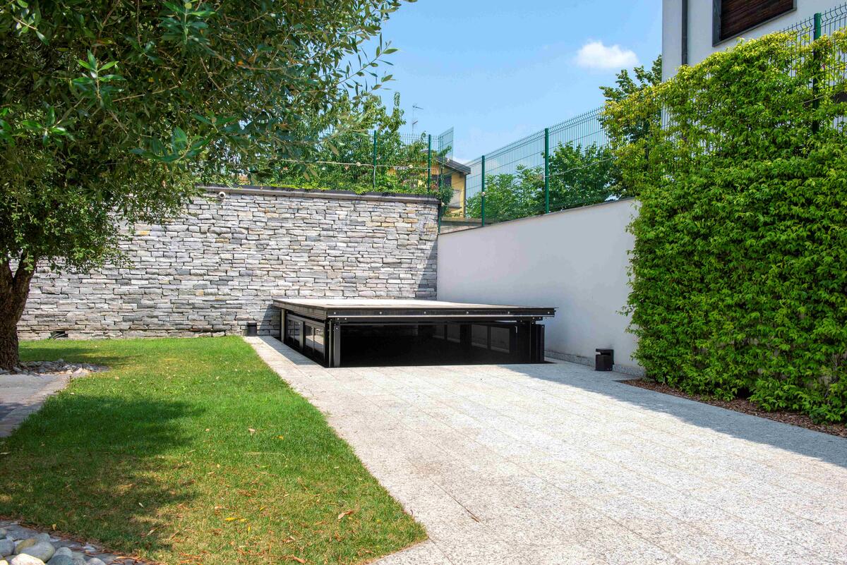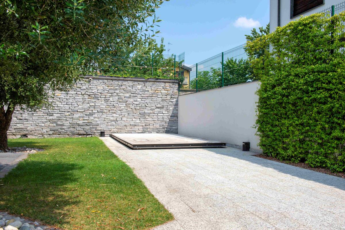 Um exemplo da aplicação do IP1-CM MOB A é o projeto de renovação em Monza-Brianza, Itália. Neste projeto, o sistema foi instalado para otimizar o espaço disponível e fornecer acesso à garagem subterrânea, preservando simultaneamente a estética e funcionalidade do jardim da residência. A integração perfeita do elevador com o ambiente envolvente demonstra a versatilidade e adaptabilidade do IP1-CM MOB A a diferentes contextos arquitetónicos.