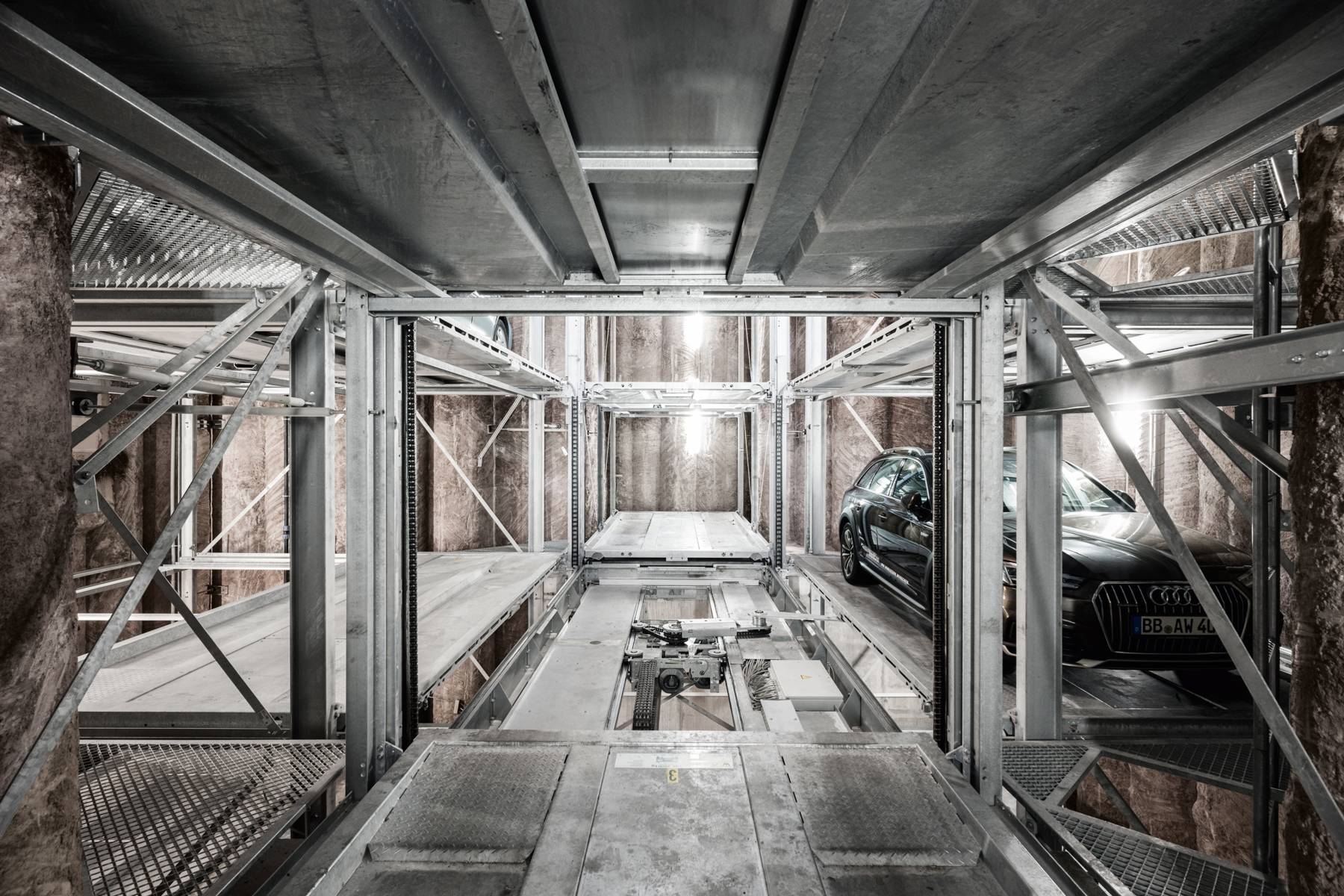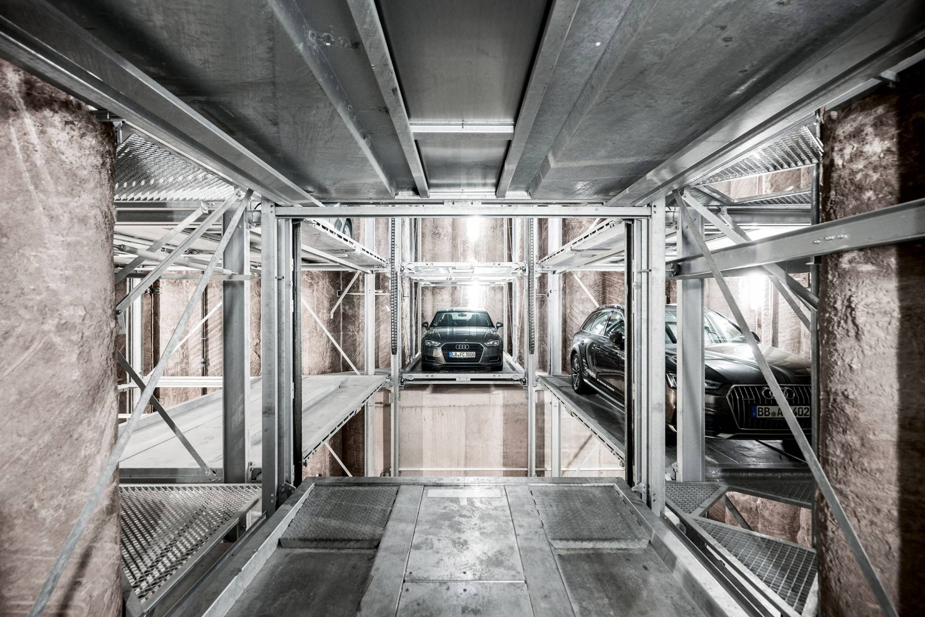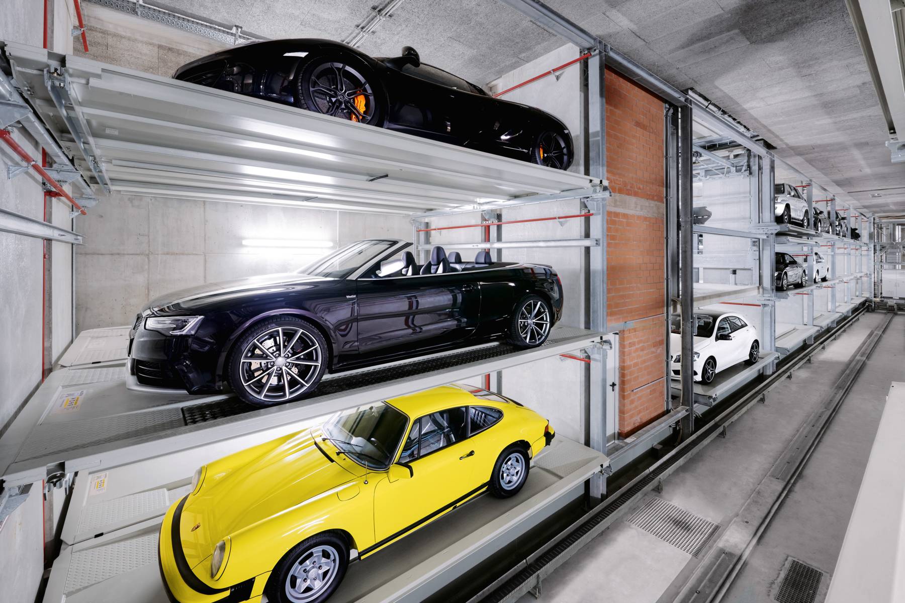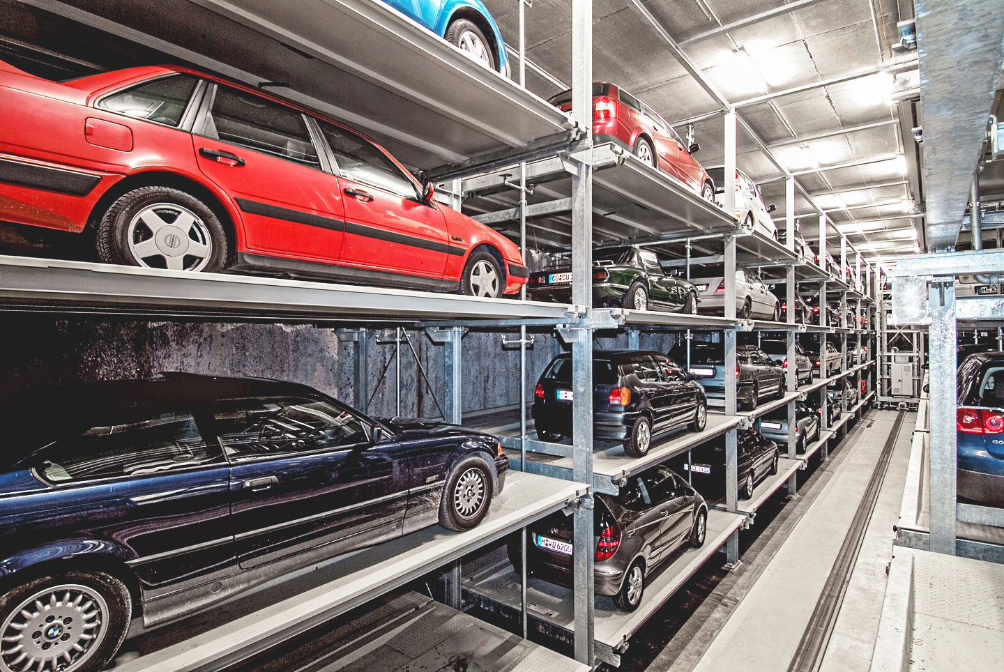 O sistema Crossparker 558 oferece uma extensão ao Slimparker 557 no que diz respeito à largura. Duas grelhas podem ser dispostas de cada lado do elevador central, duplicando desta forma a quantidade de lugares de estacionamento disponíveis.