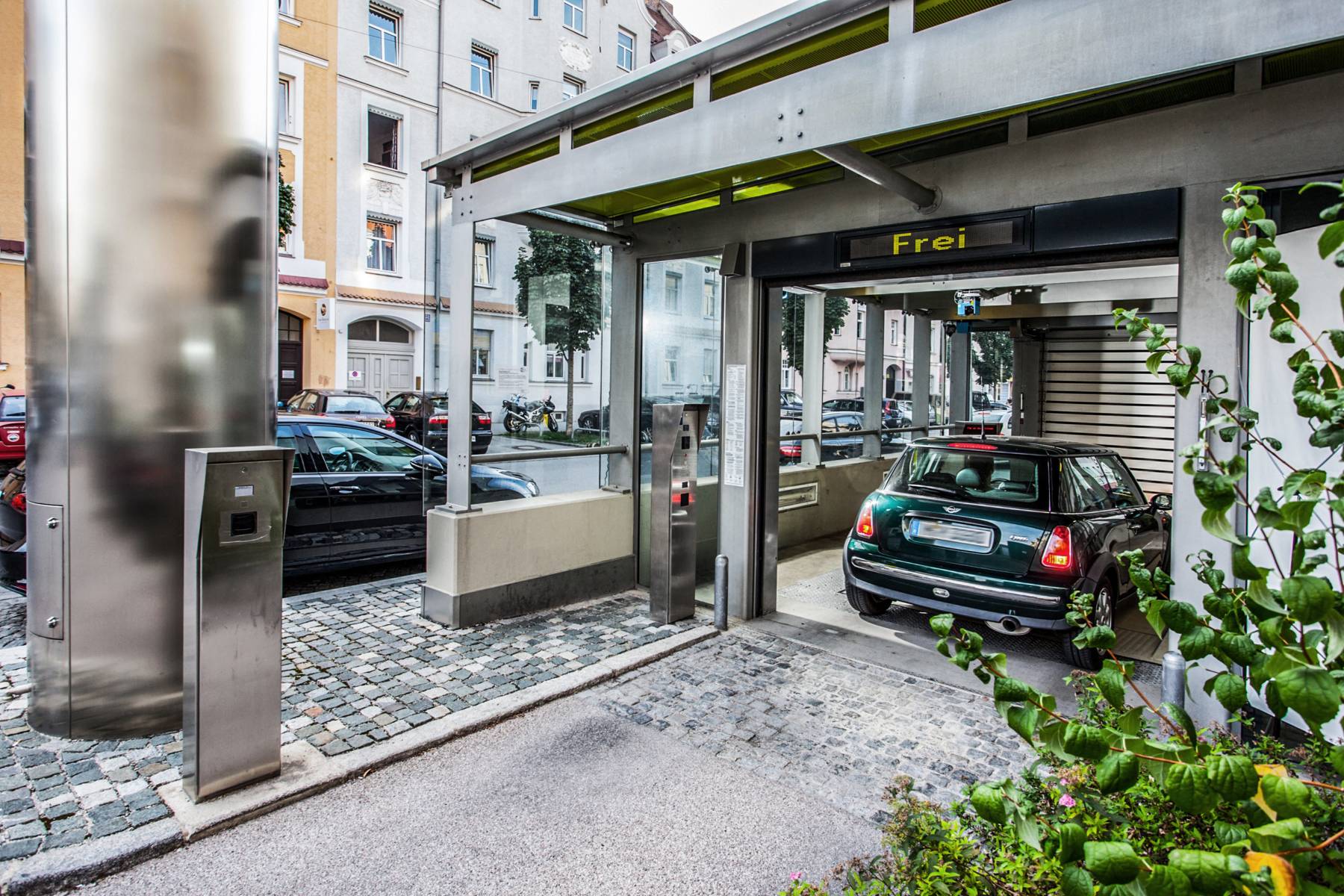 O Multiparker 740 é particularmente adequado para áreas estreitas e de planta longa. Dispõe de um parque de estacionamento de plataformas altas com economia de espaço, totalmente automático.