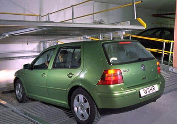 A Wohr Parking Platform 501 é uma plataforma de estacionamento de deslocação lateral que reduz as áreas de condução em favor das áreas de estacionamento.