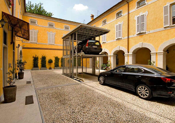 O Parklift 461 cumpre sua função na reconfiguração de construções antigas podendo ser instalado em quintais, áreas de acesso ou em jardins.