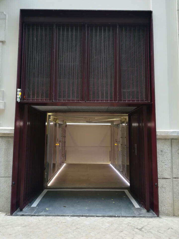 Descubra o Parklift 450 na Colina de Santana, Lisboa. Com 4 lugares de estacionamento e carregamento elétrico, este sistema eficiente e discreto é ideal para projetos de mobilidade urbana.
