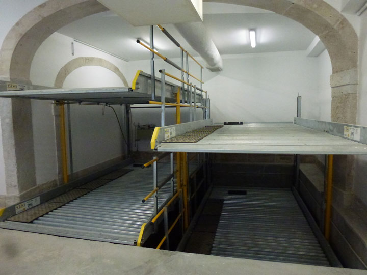 As plataformas superiores do Sistema Parklift 402 são de acesso horizontal, as plataformas inferiores têm uma inclinação...